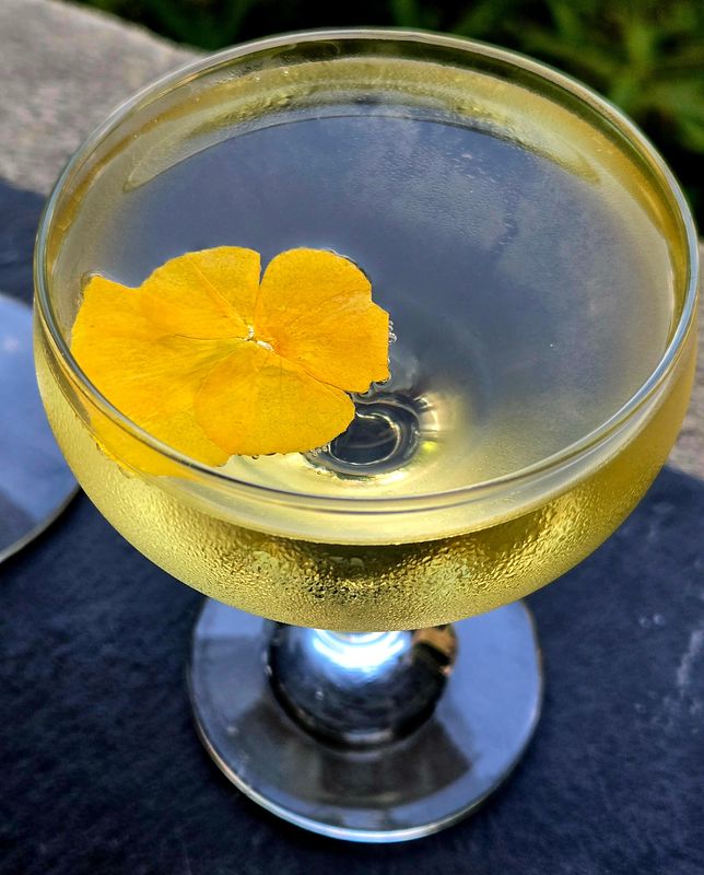 You can build this in the glass. Chill a flute or coupe glass. Add the Elderflower liqueur and Genepi first. Top with Champagne and garnish with the flower.